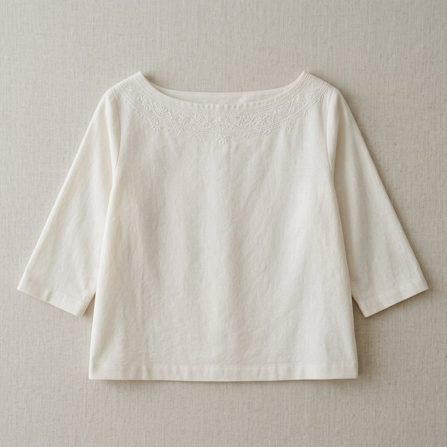 - Contrast Piping: Minimalist thin piping in contrast colors along the boat neck ridge for everyday cotton blouses.