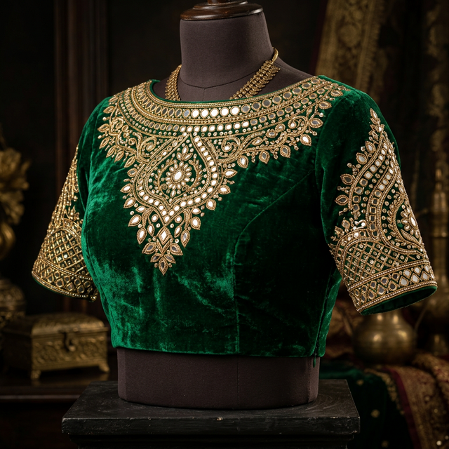| Velvet Boat Neck | Heavy Designer Lehenga or Net Saree | Receptions and winter evening galas |
