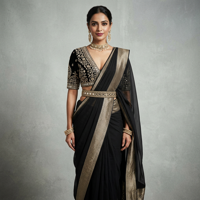 Balance is everything. If your Banarasi silk saree is heavily brocaded, pair it with a solid-color silk blouse with minimal border work. Conversely, a plain chiffon saree should be paired with a heavily sequined or embroidered statement blouse.